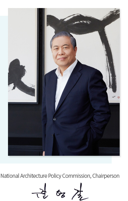 Building on the achievements of the 1st to 6th terms, the 7th National Architecture Policy Commission will present a vision for contemporary urban architecture while attentively listening to the opinions of the people and the field.We, the National Architecture Policy Commission, pledge to be an active and site-specific government commission that engages in bidirectional feedback and feedforward mechanisms. Feedback mechanism will help us respond quickly to urban architectural issues and feedforward mechanism will set the agenda proactively and present forward-looking policy.