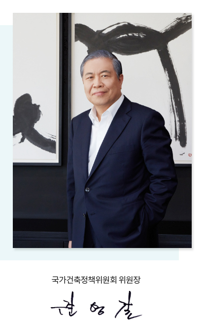 우리는 짧은 기간에 세계사에서 유례를 찾아볼 수 없는 고도성장을 이루었습니다. 그러나 성장제일주의의 후과로 숱한 분열과 갈등, 소외와 상실을 마주하게 되었습니다. 뒤늦은 깨달음이지만, 그러한 현상은 건축과 도시에 깊이 관계되어 있었습니다. 현대 사회가 앓고 있는 문제의 근원에는 도시 건축이 있지만, 그 문제의 해결 수단은 결국 건축환경입니다. 새로운 신문명 시대 행복한 삶의 조건은 국민 정주공간에 대한 깊은 성찰에서 출발해야 합니다.